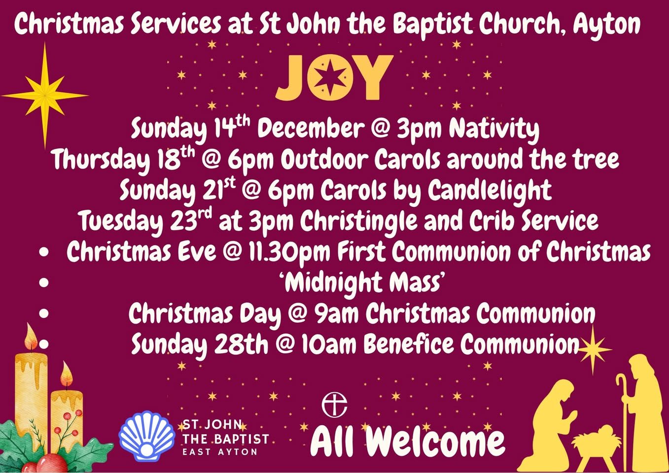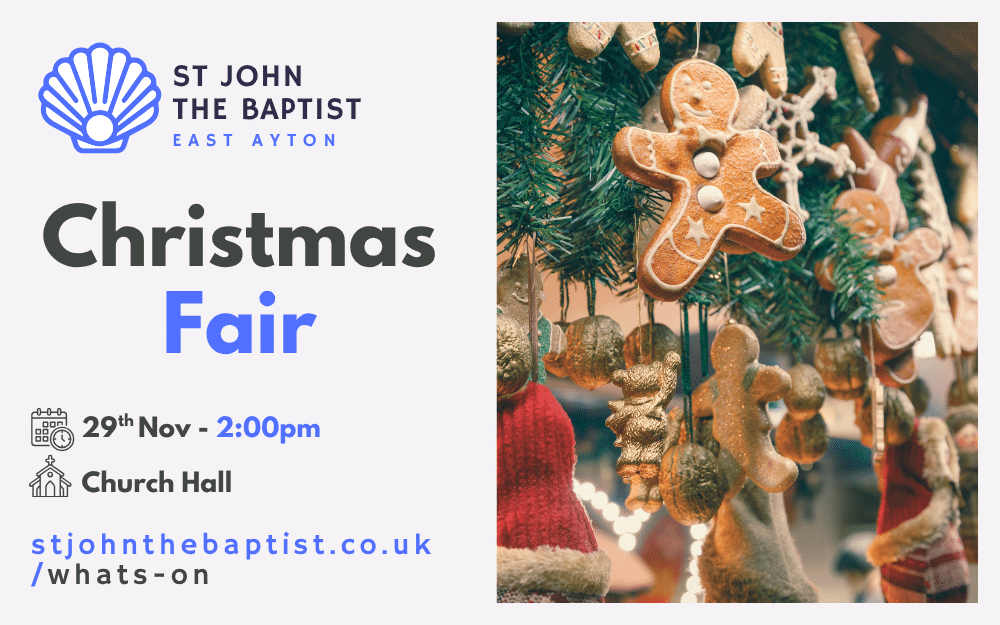 Welcome to St John the Baptist Church, the Parish Church of East Ayton in the Diocese Of York and part of the Church Of England. We are linked with St Martin’s Church of Seamer and St John the Baptist, Cayton in a joint benefice.